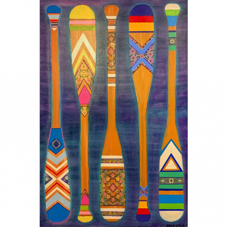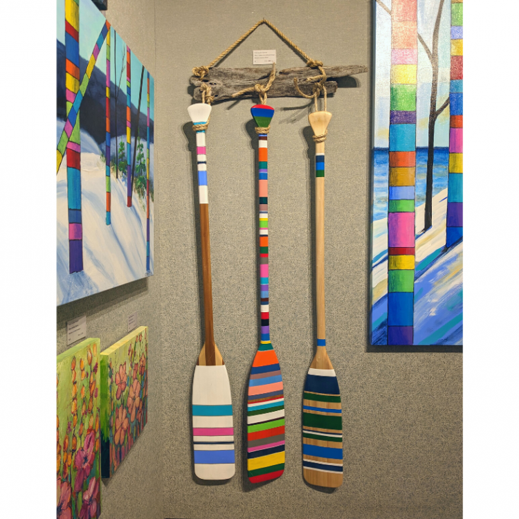 The exhibit showcased the art of four female artists from Southern Georgian Bay. First and foremost friends, these artists were brought together through art, but their perspectives are as diverse as their art. Using diverse materials, from oil to acrylic and encaustic mediums, they use colour, form, light and unique perspectives to share their individual stories. When all these stories are woven together into a dynamic, colourful group show, the impact is...truly magical!